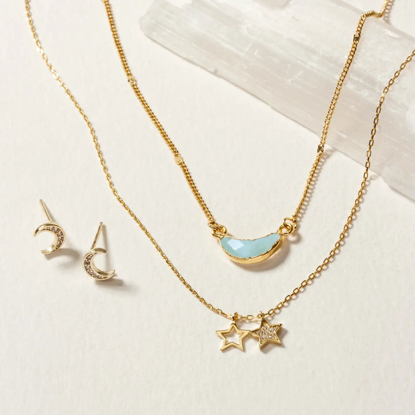 This best-selling necklace and earring set is here to remind its wearer not to be afraid to shine! And to be the moonlight in the dark sky and let their inner radiance be their main force.