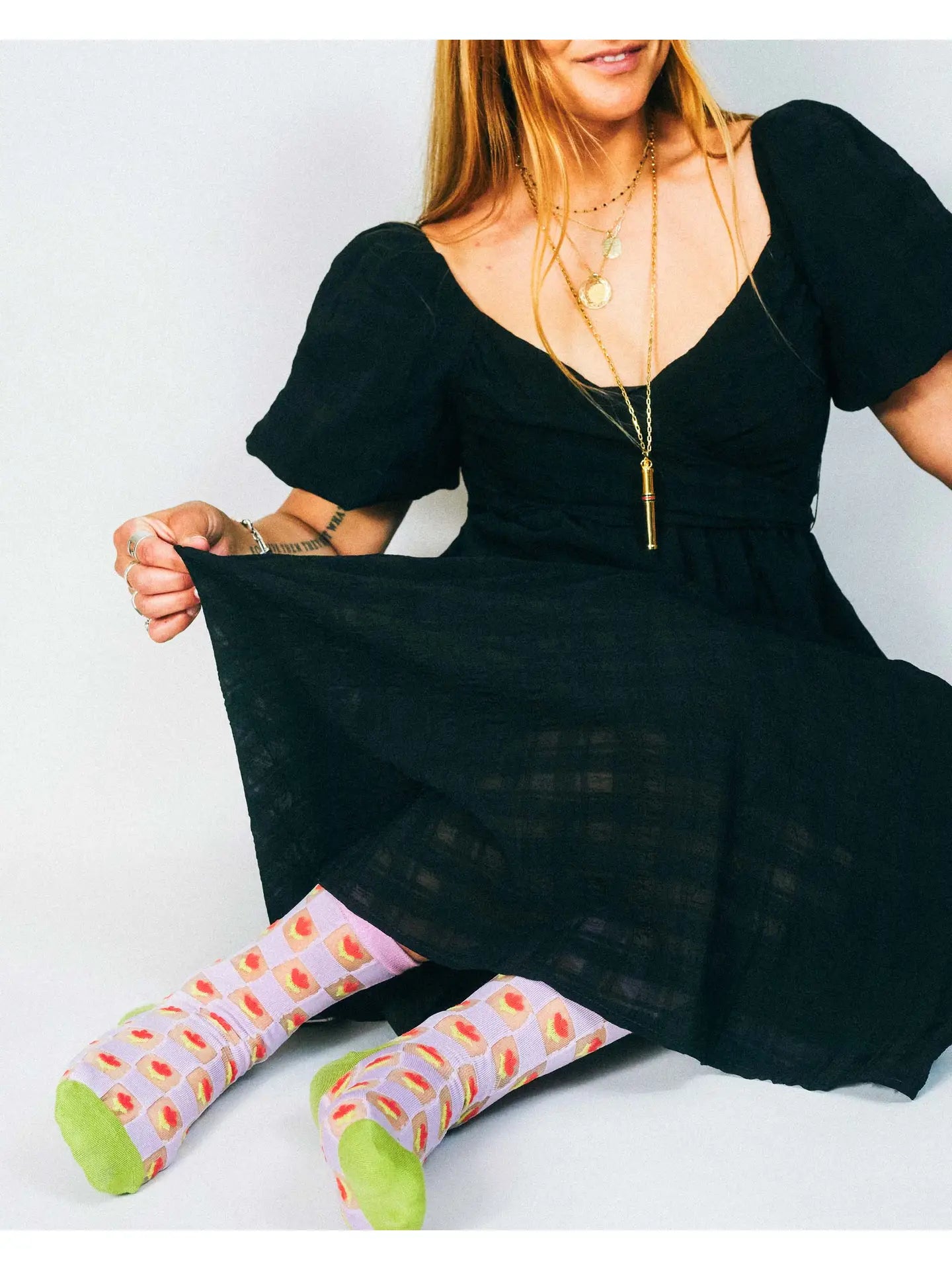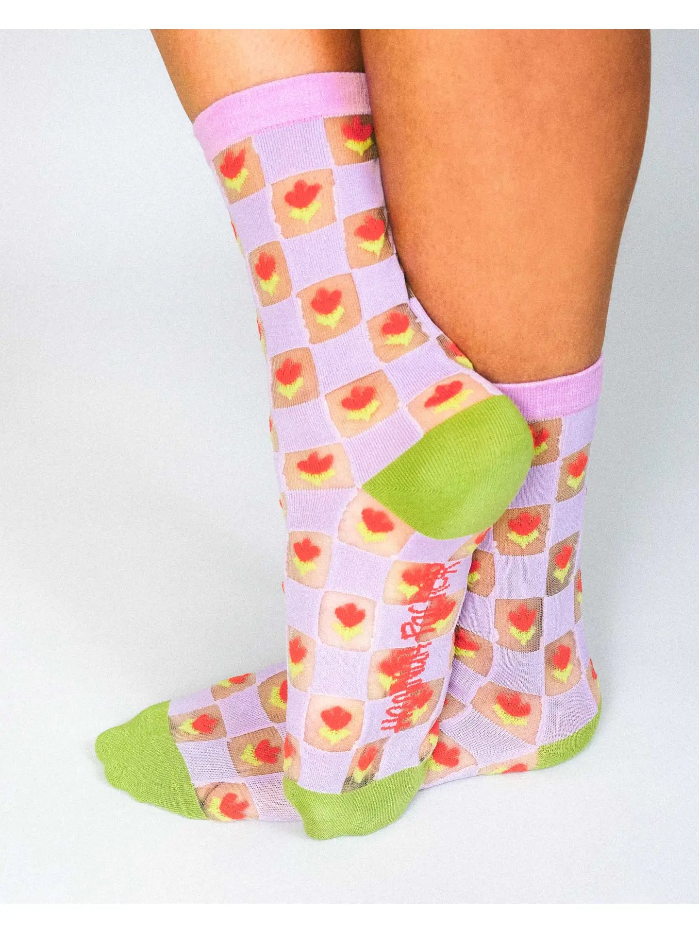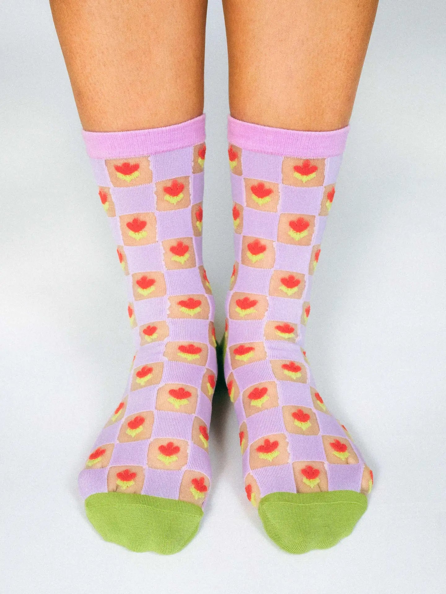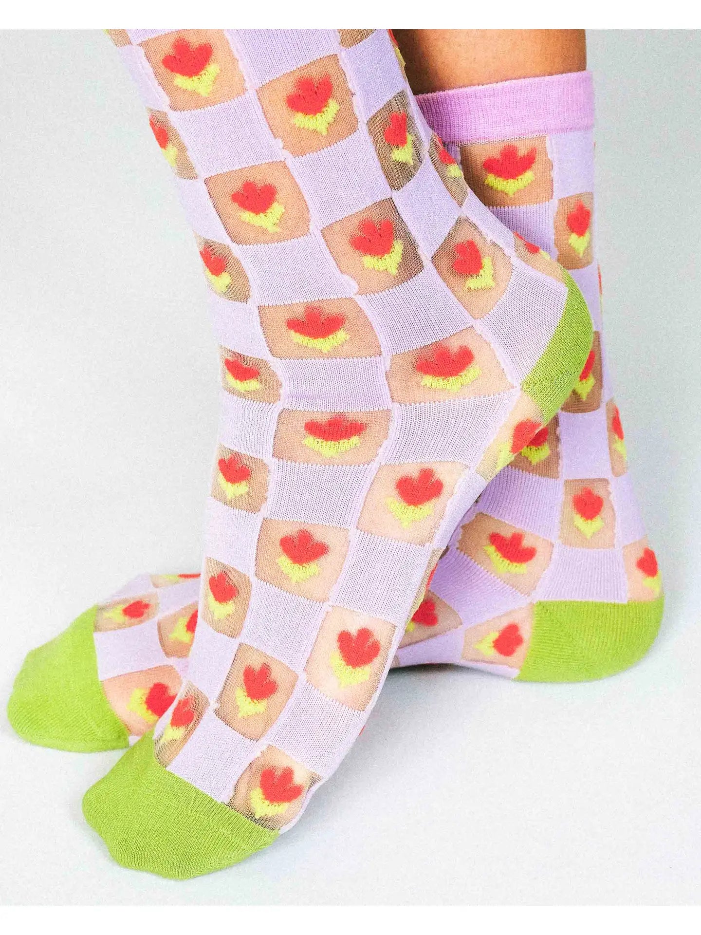 Checkered Tulips Sheer Ankle Sock By Hannah Packer