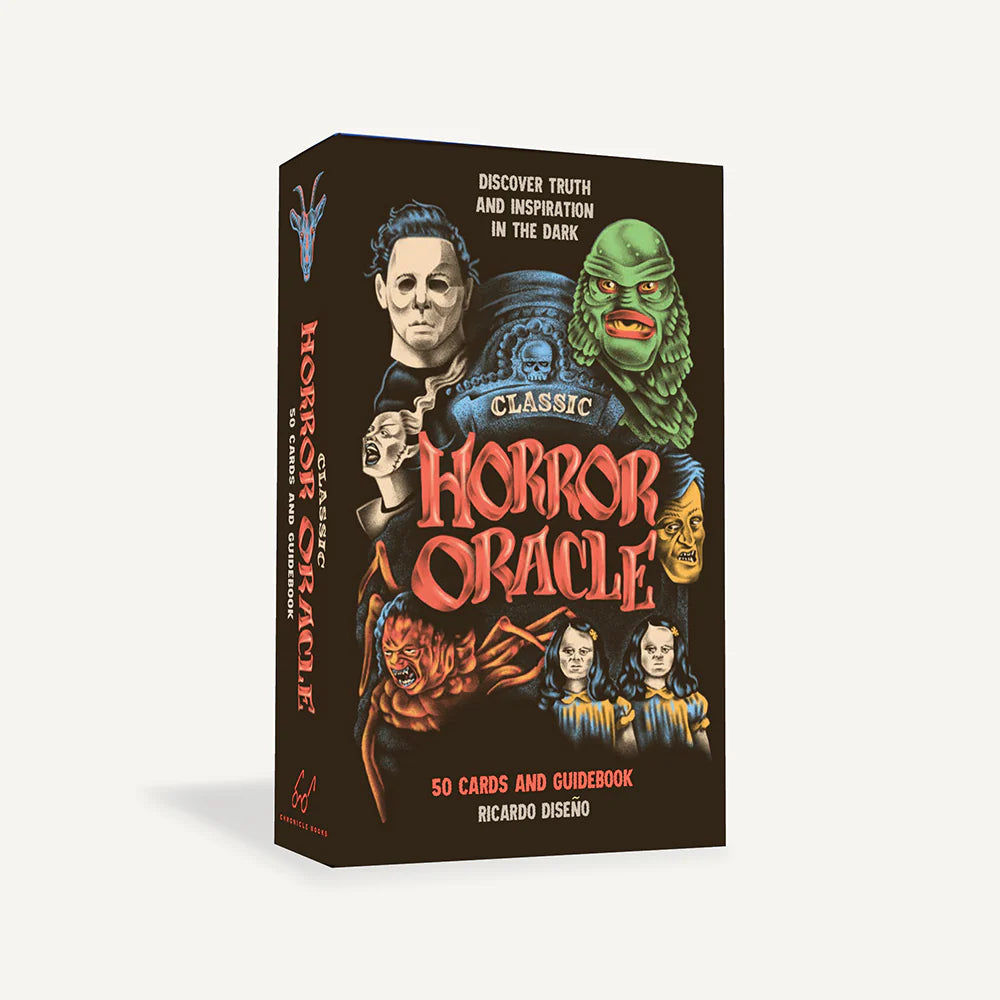 This uniquely entertaining and beautifully creepy oracle deck harnesses the energies and dark truths revealed in iconic classic horror movies to find guidance, discover inner resources, and cultivate inspiration. Each of the 50 carefully selected films is represented by an evocative mini-movie-poster-style illustration from celebrated artist Ricardo Diseno, with an oracular theme for divination called out.