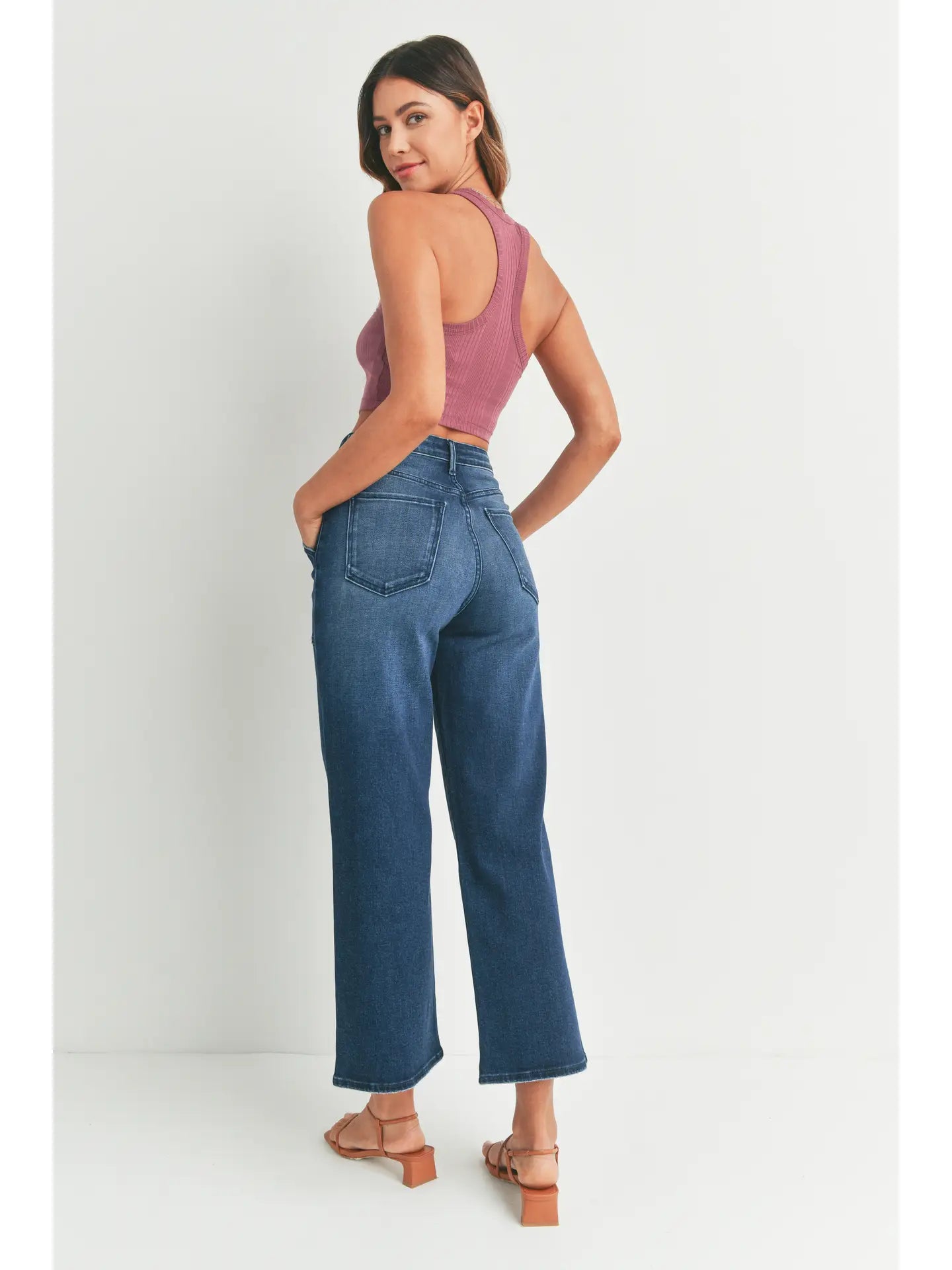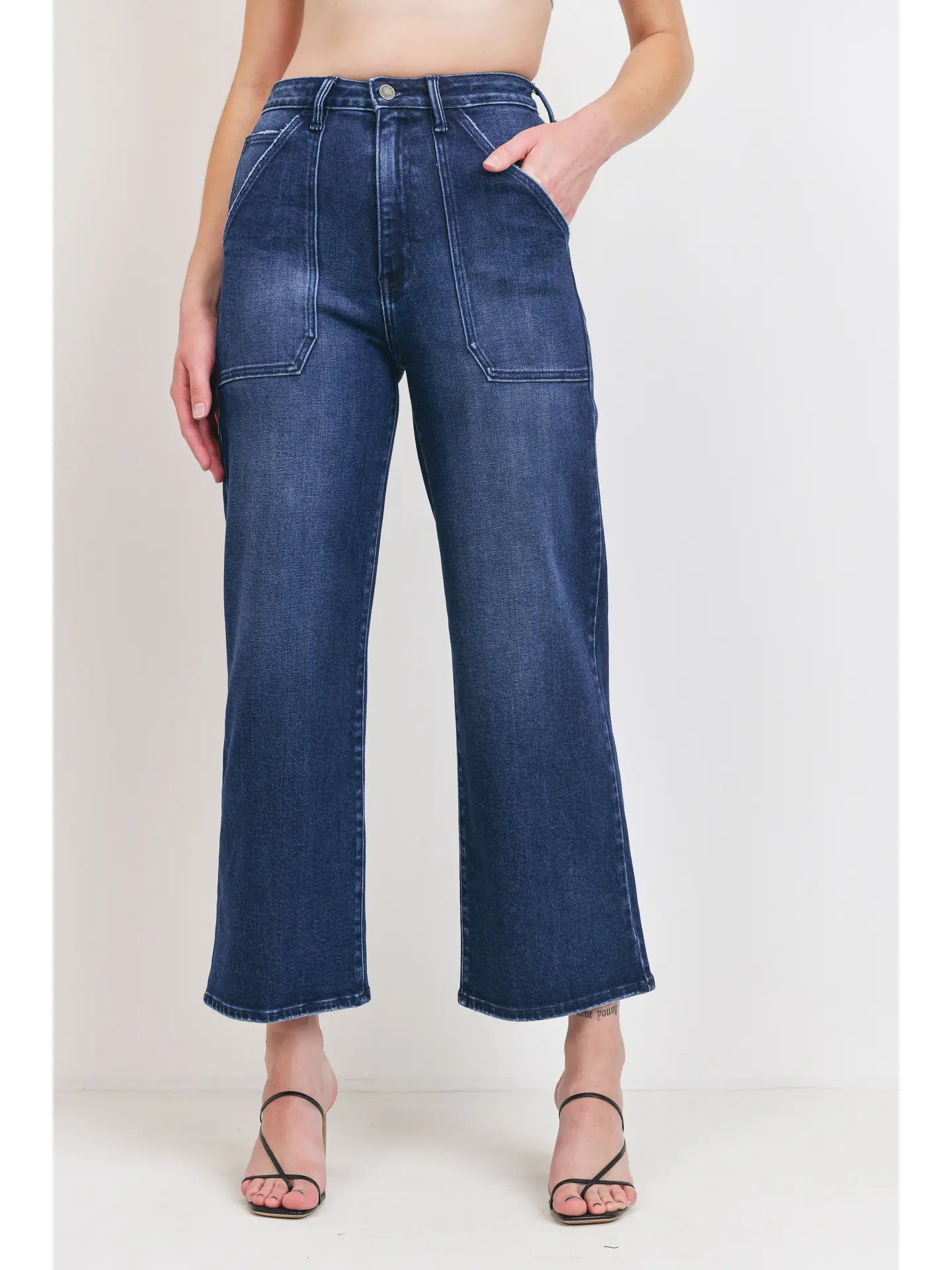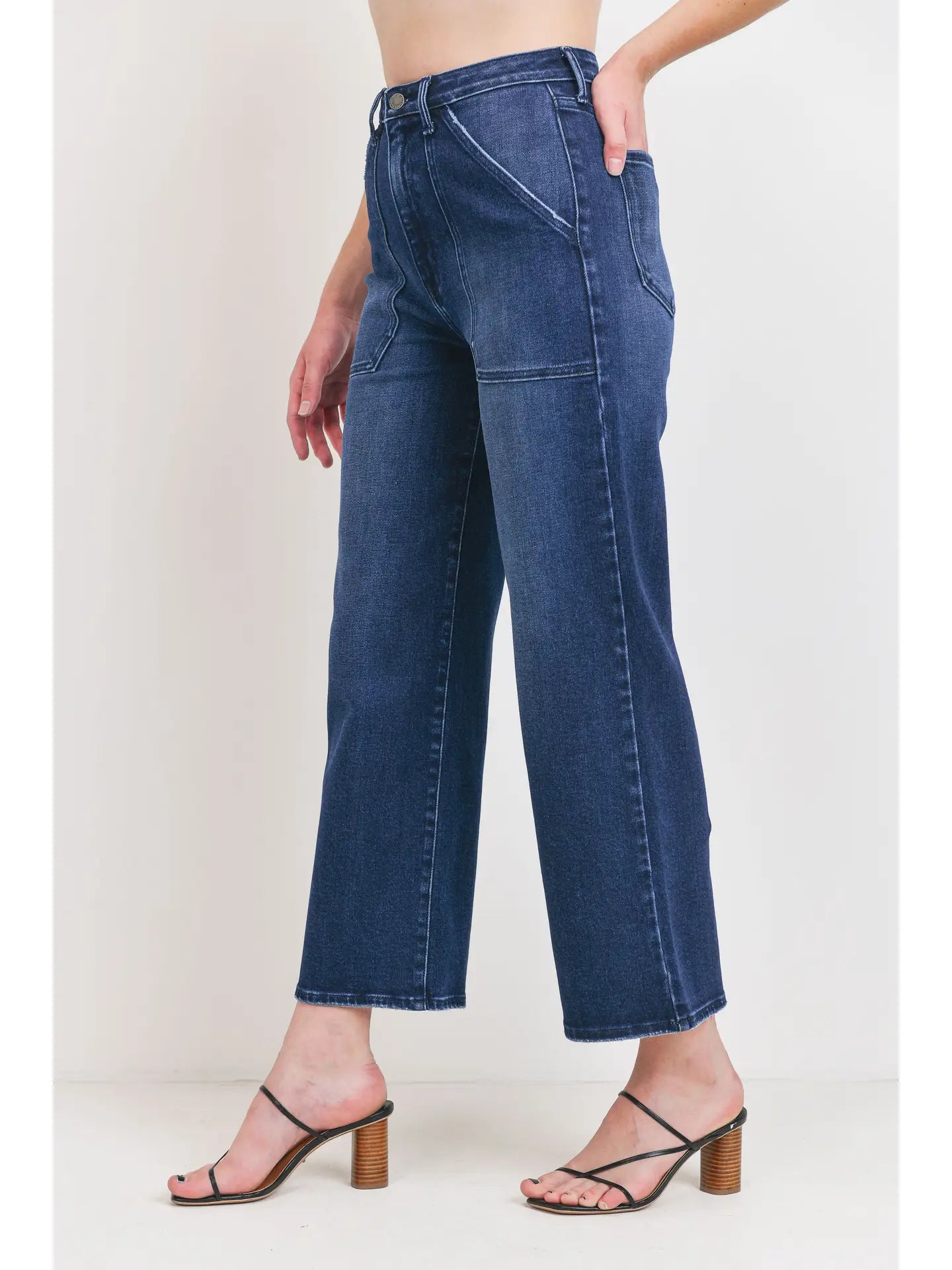 Dark Wash Denim Cargo Wide Leg