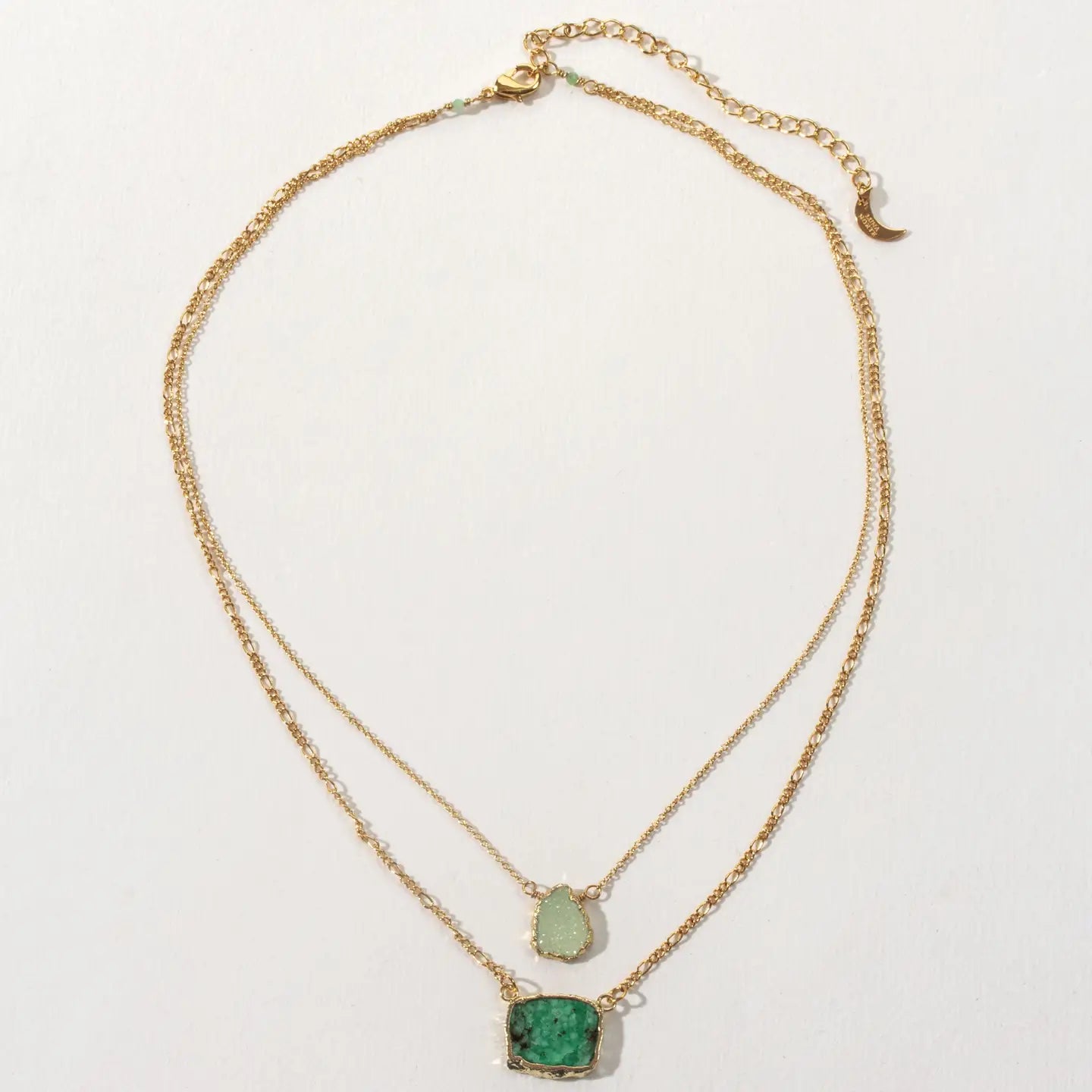14KT gold plated brass, Genuine stone layered necklace.