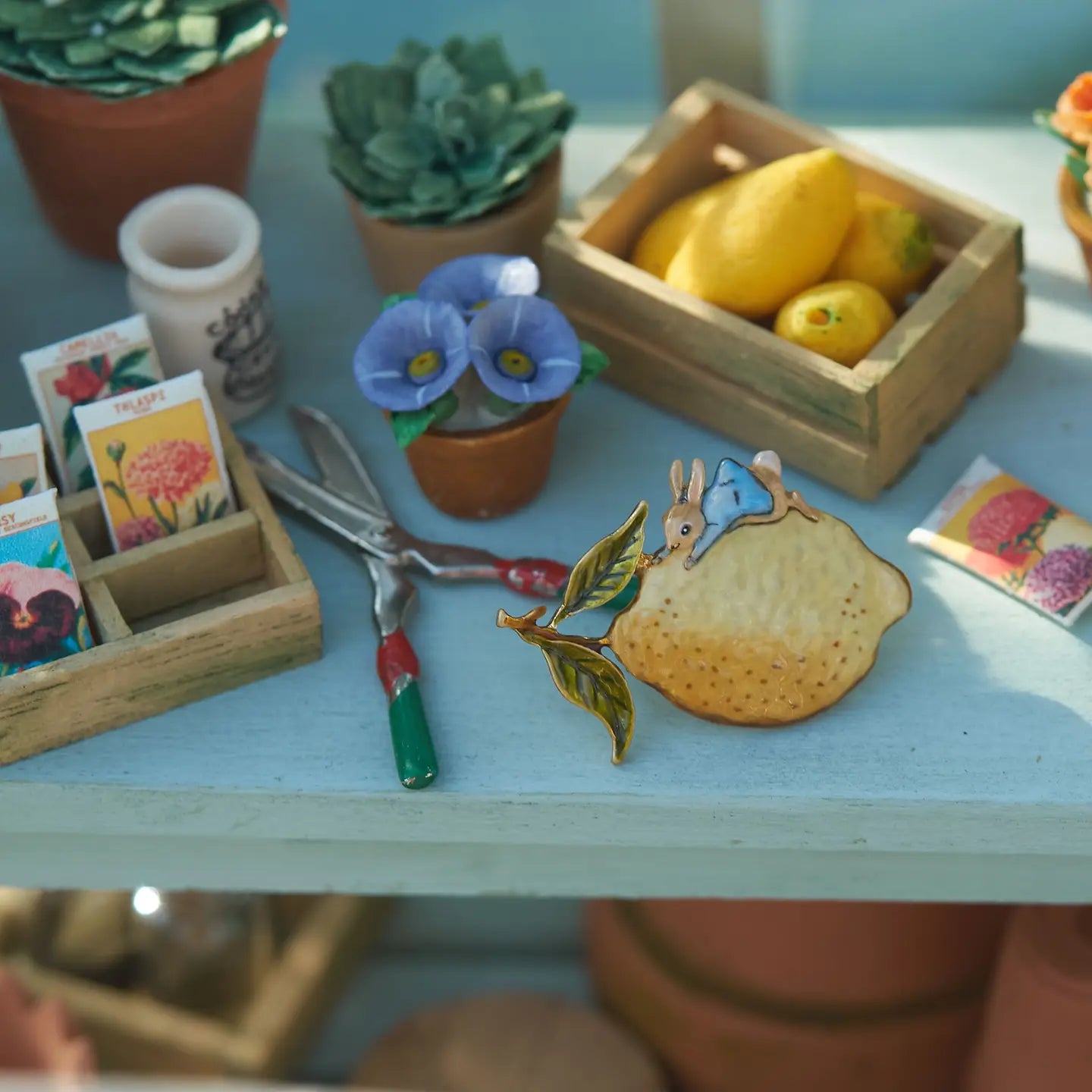 Is that Peter Rabbit playfully climbing an oversized lemon? Indeed, it is! This charming brooch, masterfully crafted from high-quality enamel and intricately painted by hand, is a delightful addition to our exclusive Fable England X Peter Rabbit collection. Each detail captures the whimsical spirit of Beatrix Potter’s beloved character, making it a true treasure for collectors and fans alike.