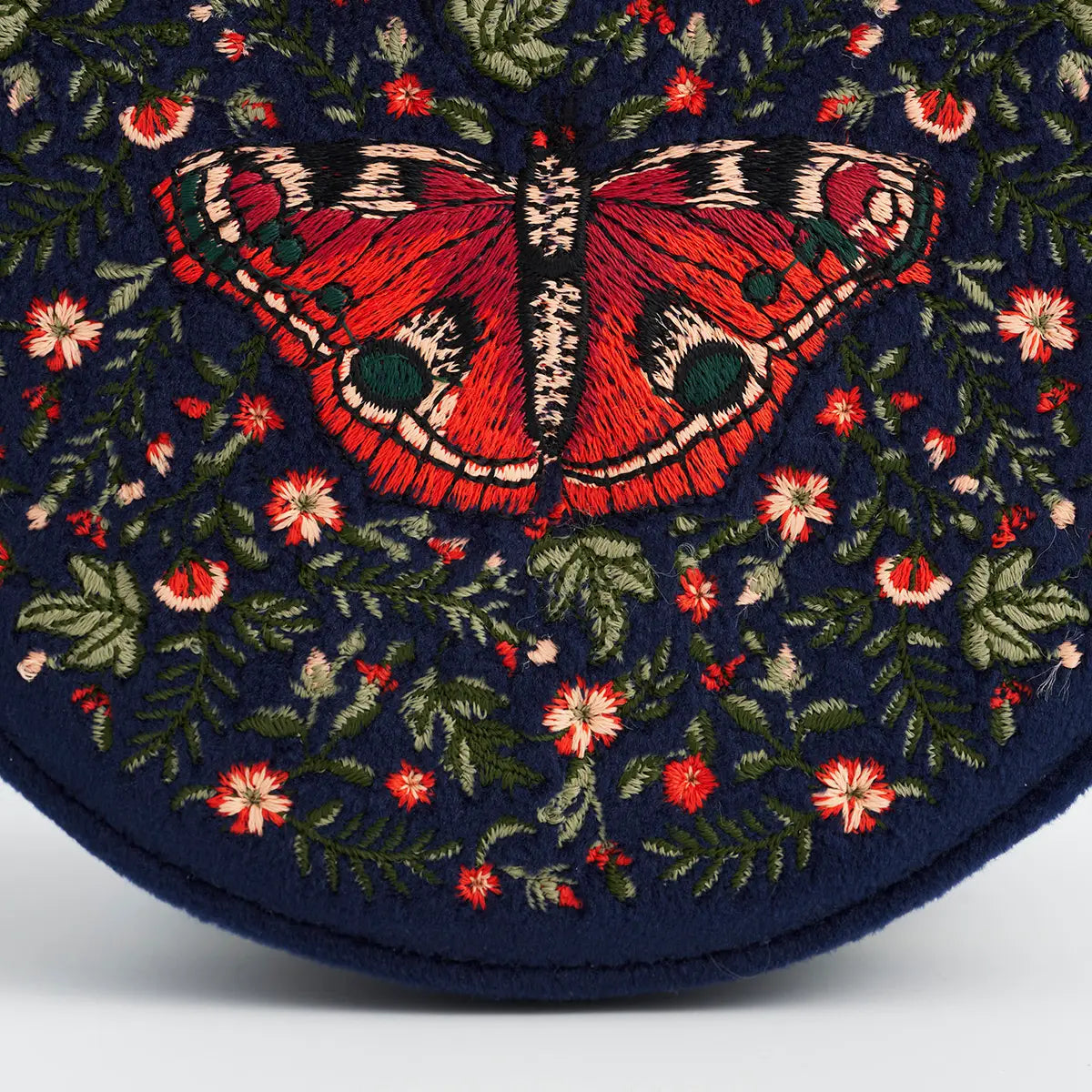 Red Admiral Navy Velvet Embroidered Jewelery Box by Fable England