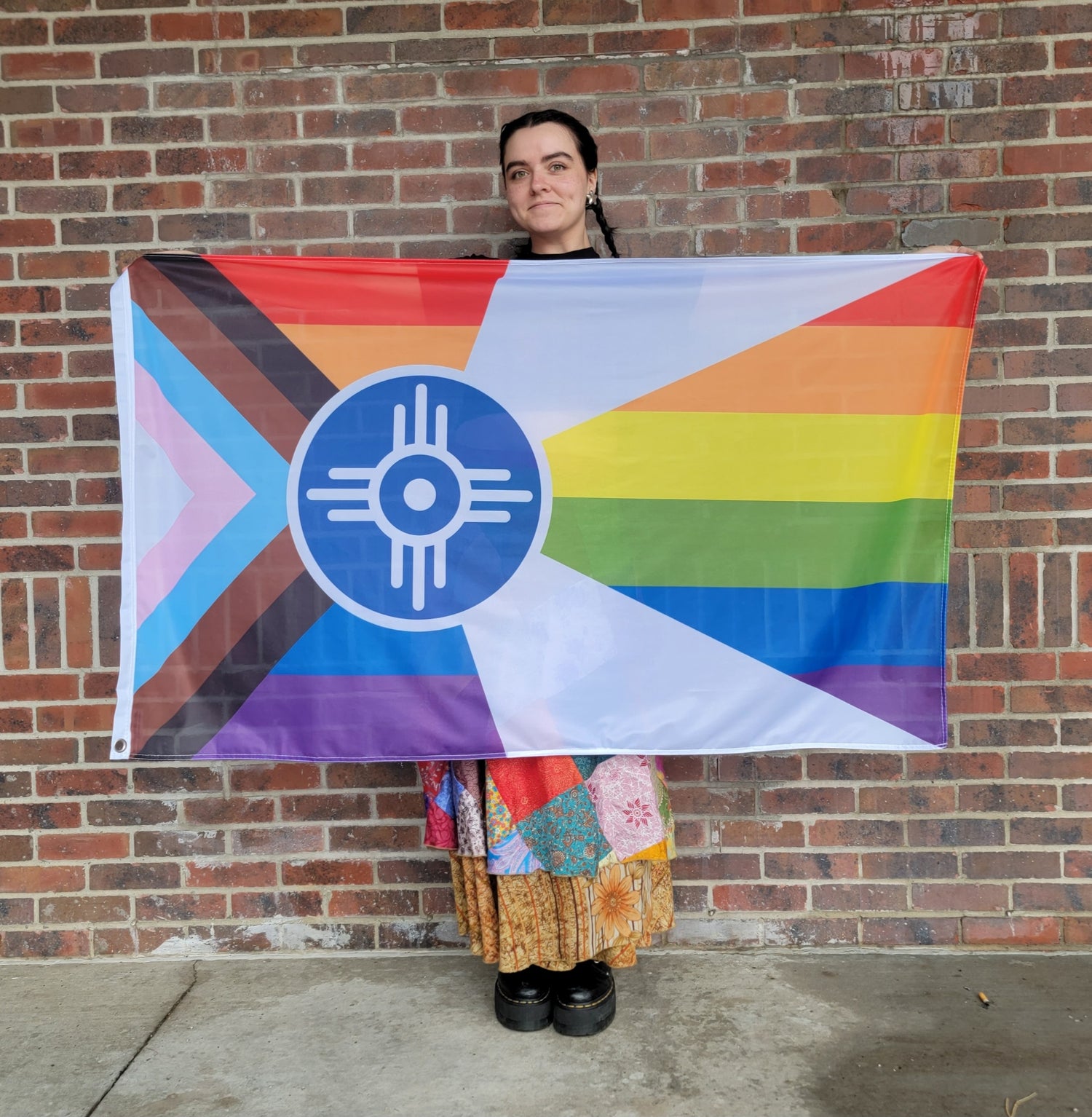 ✍️ the design: Lucinda's worked with Flags for Good to mash up the Wichita flag with Daniel Quasar's progress pride.